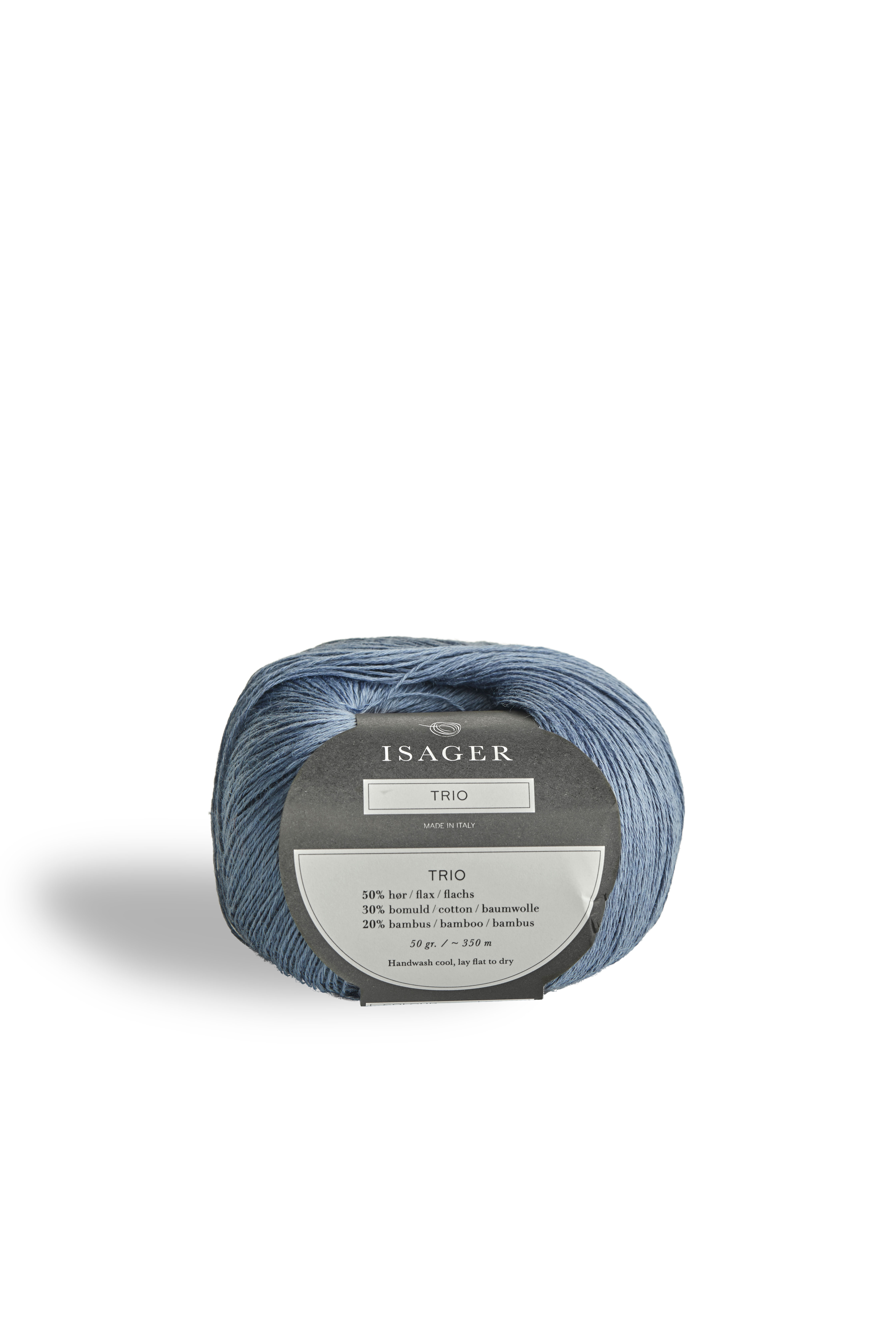 Beskrivelse Trio er en deilig blanding av bomull, lin og bambus – perfekt til sommerstrikk! Garnet kan strikkes alene, eller med to eller flere tråder, og blir nydelig sammen med en tråd Silk Mohair. Fiberinnhold: 50% lin, 30% bomull, 20% bambus Strikkefasthet: 26 m / 10 cm (dobbel tråd) Løpelengde: 50 g = 350 meter Anbefalt pinnestørrelse: 3 mm (dobbel tråd) |