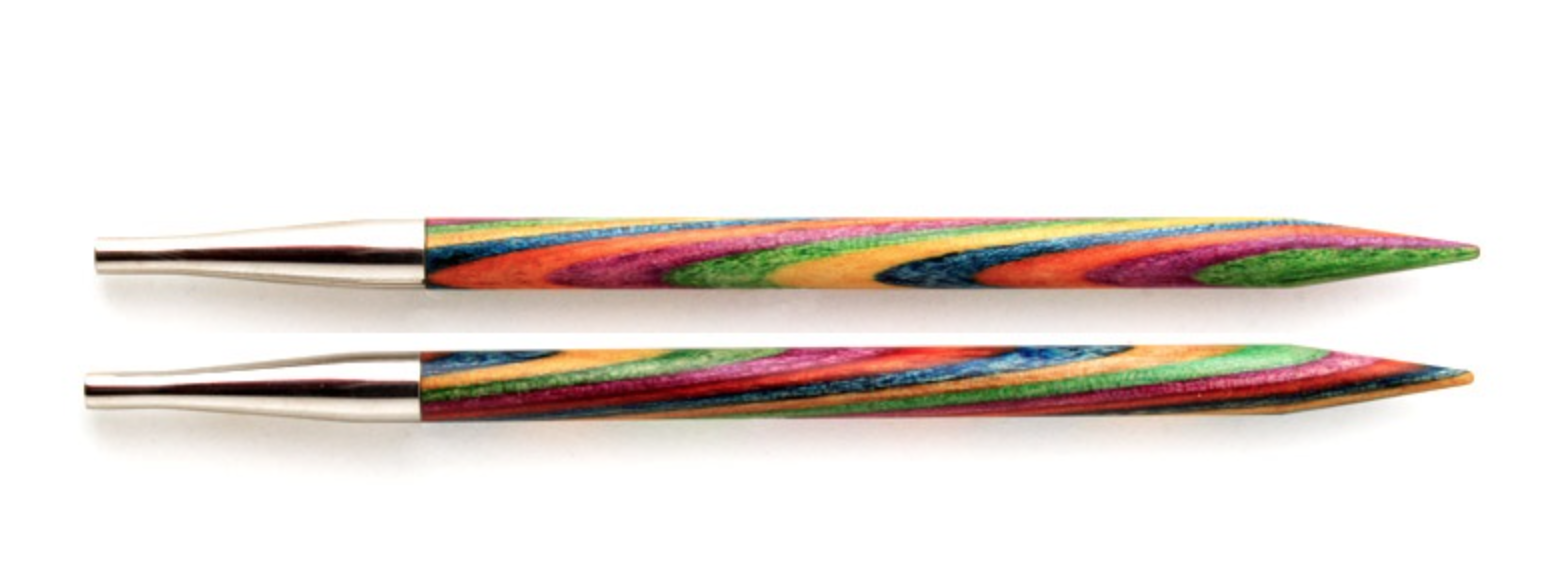 Beskrivelse Symfonie utskiftbare rundpinner i regnbuefarget bjørkefinèr er fantastiske å strikke med. Disse er av den korte varianten og passer til 40cm vaiere. Akkurat passe spisse, og overgangen mellom spiss og pinne går gradvis slik at maskene glir lett på plass. Vaier kjøpes separat. Passer alle typer strikkeprosjekter. |