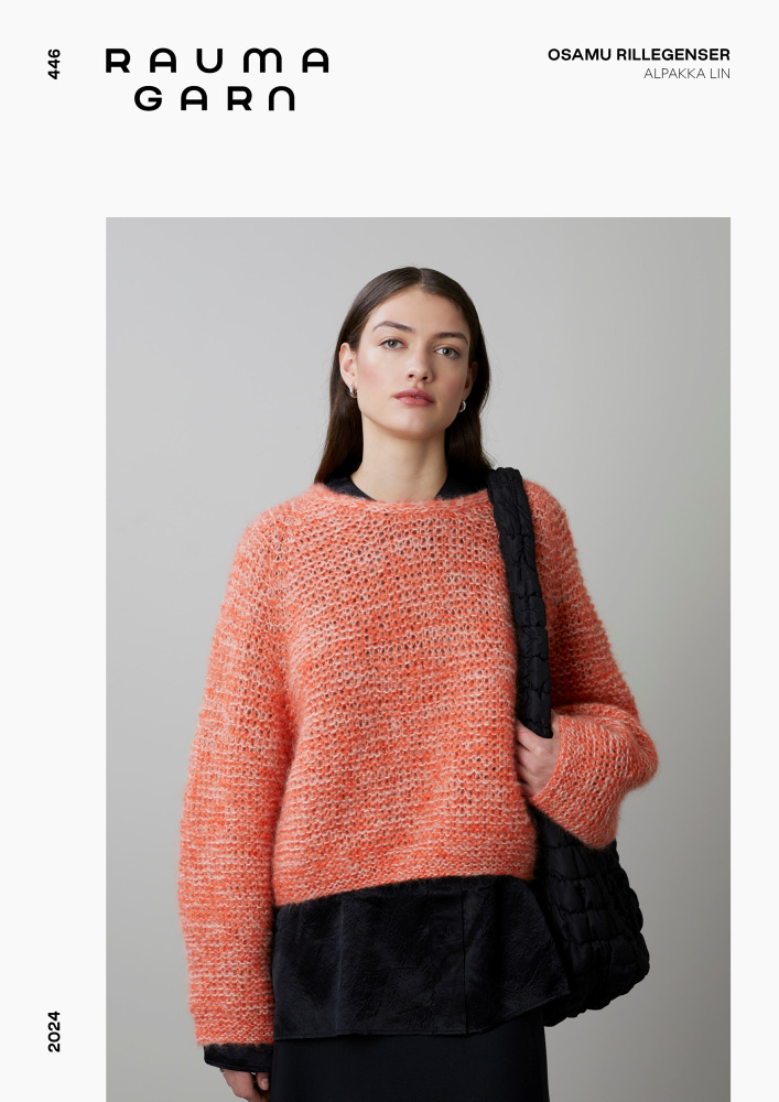 Beskrivelse Osamu rillegenser er en oversized raglangenser strikket ovenfra og ned. Den strikkes med 2 tråder i ulik farge for en melert effekt. Først strikkes det frem og tilbake med raglanøkninger mens det økes til halsutringning. Så legges det opp masker midt foran, arbeidet samles og det strikkes videre rundt mens raglanøkningene fortsetter. Når raglanøkningene er ferdig, deles arbeidet og bol og ermer strikkes ferdig hver for seg. Velg mellom å strikke dem rundt eller frem og tilbake. Mot slutten av ermer og bol, felles det først jevnt fordelt, før det byttes til tynnere pinner. Slik skapes den avrundede fasongen. Til slutt strikkes det opp masker rundt halsåpningen, og halskanten strikkes som en bred I-cordavfelling. Om ermer og bol er strikket frem og tilbake sys de sammen i siden av bolen og midt under ermene. For en oversized fasong, velg en størrelse med brystvidde 30-40 cm større enn din egen. Veiledende pinnenummer: Pinne nr 4.5 og 6 mm Strikkefasthet: 13 m rillestrikk = 10 cm |